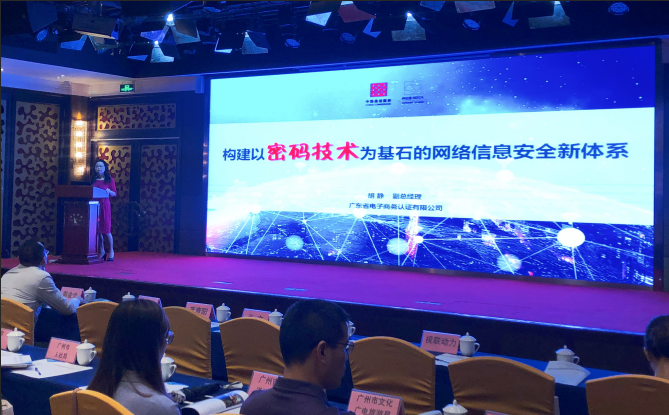 大會設有網絡安全形勢與政務數據安全、新型智慧城市安全保障體系、構建以密碼技術為基石的網絡信息安全新體系、一站式云安全解決方案等幾大專題論壇。廣東省電子商務認證有限公司(以下簡稱“網證通”)副總經理胡靜應大會邀請,作為專家出席專題論壇演講,她介紹到我國近年來出臺的多項政策法規,無不在強化密碼技術在應用中作為基礎設施建設的巨大作用,完善應用系統的商用密碼建設,構建基于數字證書的網絡信任基礎體系已成為重中之重。電子認證技術作為核心密碼技術,在可信身份認證、可信電子簽名服務、可信數據傳輸、可信數據加解密的四大應用,呈現了網證通在服務國家網安戰略、推進“互聯網+”可信身份服務、全面護航智慧政府、助力數字經濟提速等四大核心的內容,充分契合了中國通服的“建造智慧社會,助推數字經濟,服務美好生活”的主題。