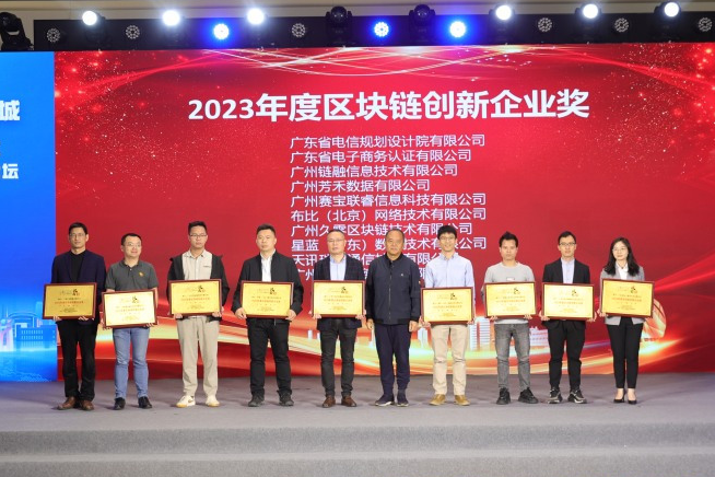 區塊鏈技術作為一種分布式、不可篡改的數字賬本技術,正逐漸成為智慧城市建設中的重要組成部分。在本次博覽會開展的以“數字引領、智慧賦城”為主題的“2023粵港澳大灣區智慧城市產業領袖論壇”上,網證通從“智慧賦城”的角度,就智慧城市建設中區塊鏈技術的應用與相關部門領導、專家學者、技術大咖、知名企業家和眾多企業高管代表等產業領袖展開探討、分享觀點、交流思想、碰撞商機、共謀發展、達成合作共識。因在數字技術應用和智慧城市建設領域中發揮了典范引領作用,網證通榮獲廣東省云計算協會、廣東省高新技術企業協會和中國(大灣區)智慧城市大會組委會聯合頒發的“2023年度區塊鏈創新企業獎”,網證通執行董事胡文聰榮獲“2023年度區塊鏈創新人物獎”。