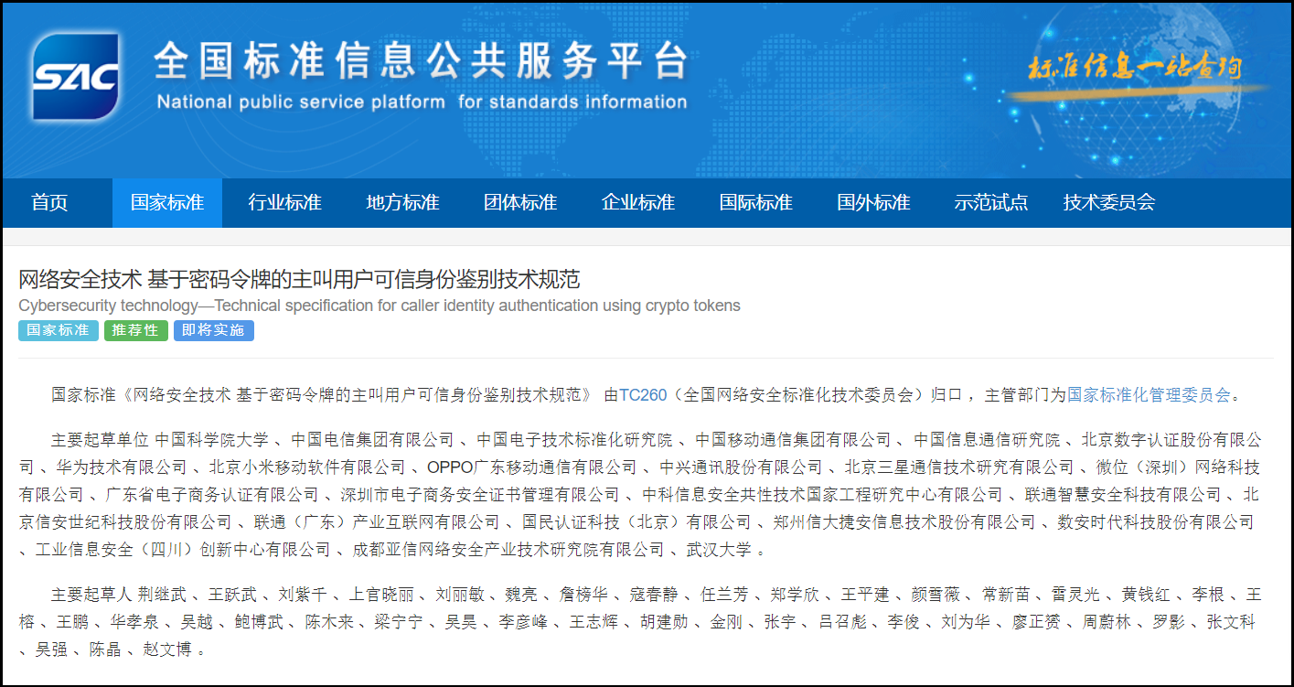 可信通信國家標(biāo)準(zhǔn)的研制歷經(jīng)4年時(shí)間,2020年廣東省電子商務(wù)認(rèn)證有限公司(簡稱網(wǎng)證通NETCA)與中國科學(xué)院大學(xué)、微位科技聯(lián)合開展了"基于密碼令牌的可信通信服務(wù)技術(shù)規(guī)范"國家標(biāo)準(zhǔn)研究課題,基于該課題研究成果,2021年《信息安全技術(shù)基于密碼令牌的主叫用戶可信身份鑒別技術(shù)規(guī)范》國家標(biāo)準(zhǔn)的制定工作正式啟動(dòng),網(wǎng)證通NETCA作為主要起草單位不僅積極參與標(biāo)準(zhǔn)的制定,還與中國科學(xué)院大學(xué)、中國電信等單位聯(lián)合開展了國家標(biāo)準(zhǔn)試點(diǎn)工作。