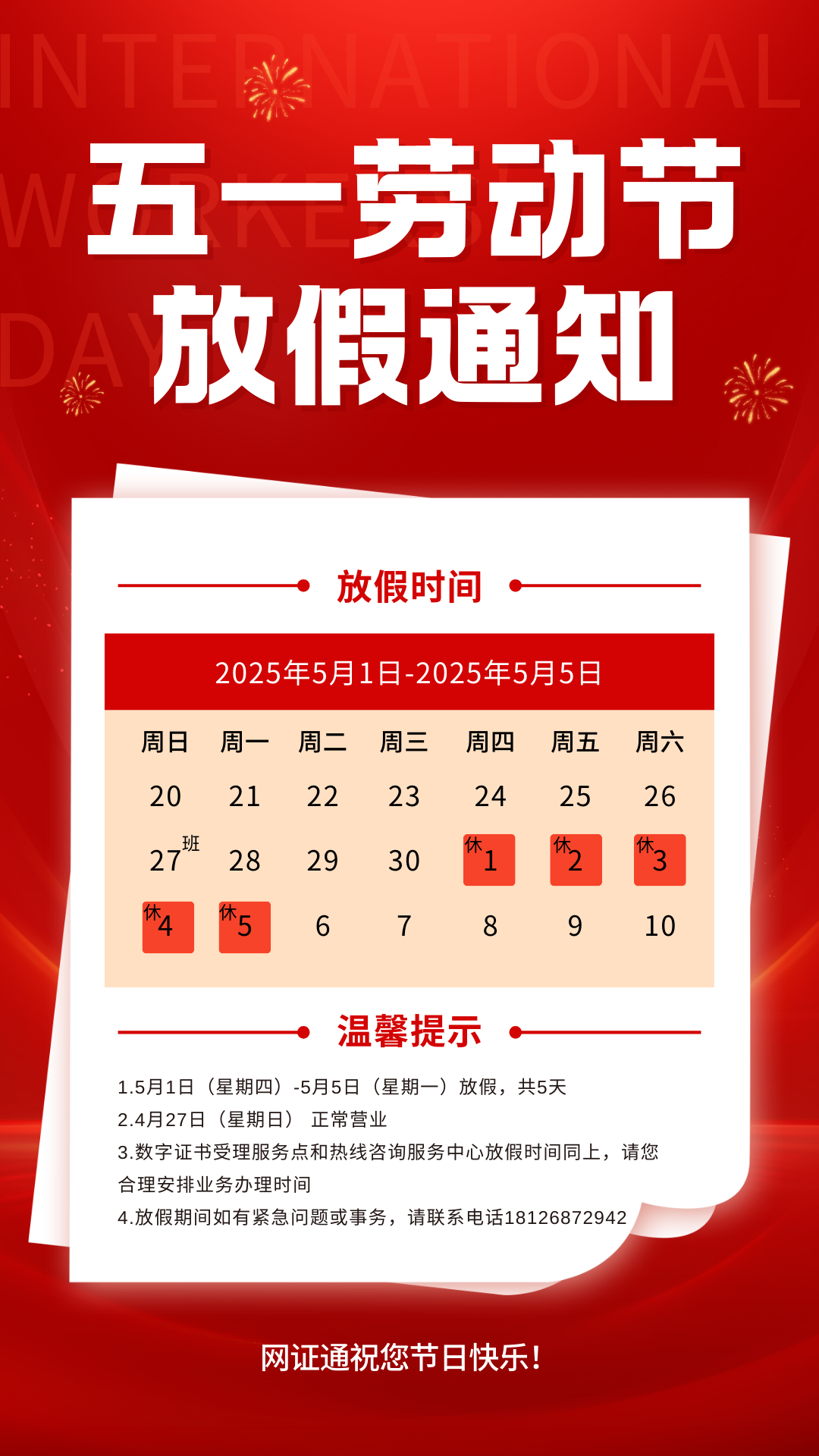 五一勞動節放假通知