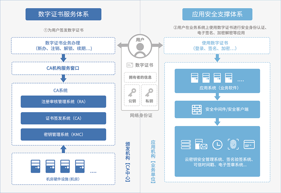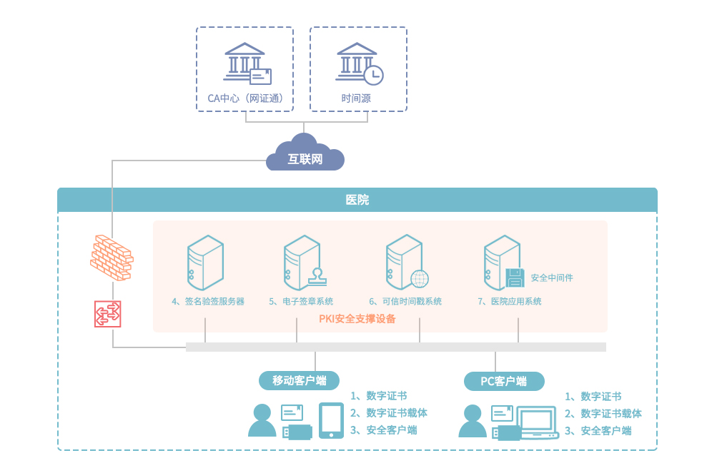 為解決醫院的電子病歷的各種安全可信問題,網證通為醫院搭建兩套電子認證安全保障體系,一是電子認證服務體系,二是電子認證應用支撐體系,兩大體系相輔相成,實現電子病歷真實、完整、責任可追溯,實現醫院全業務、全流程無紙化。